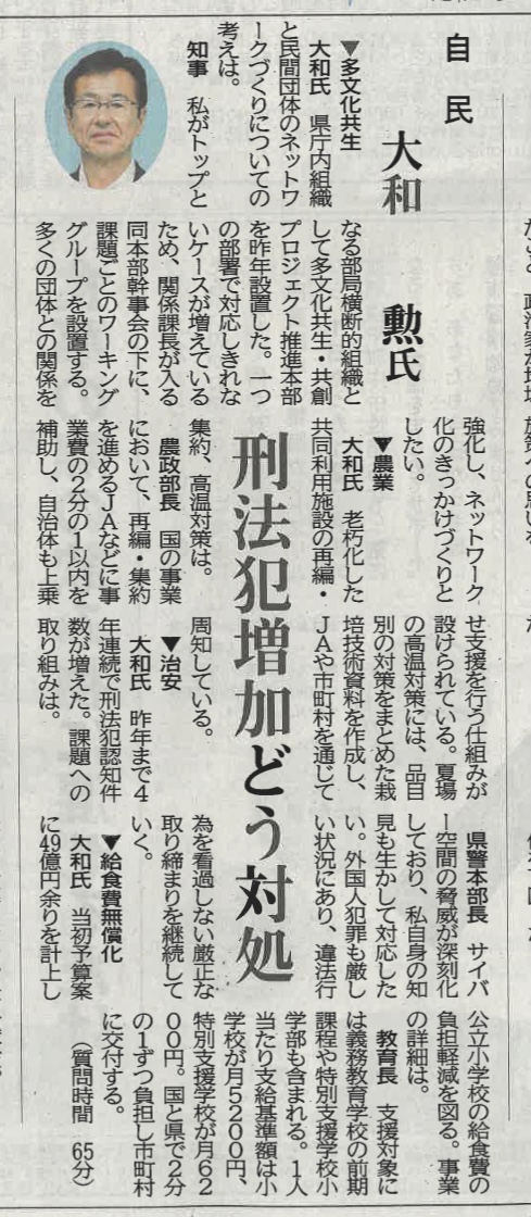 代表質問した内容が、新聞掲載されました。